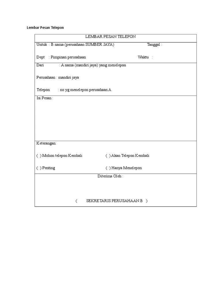 Lembar Pesan Telepon Beserta Isinya - Pendirian Koperasi Ahu Online : We did not find results for: